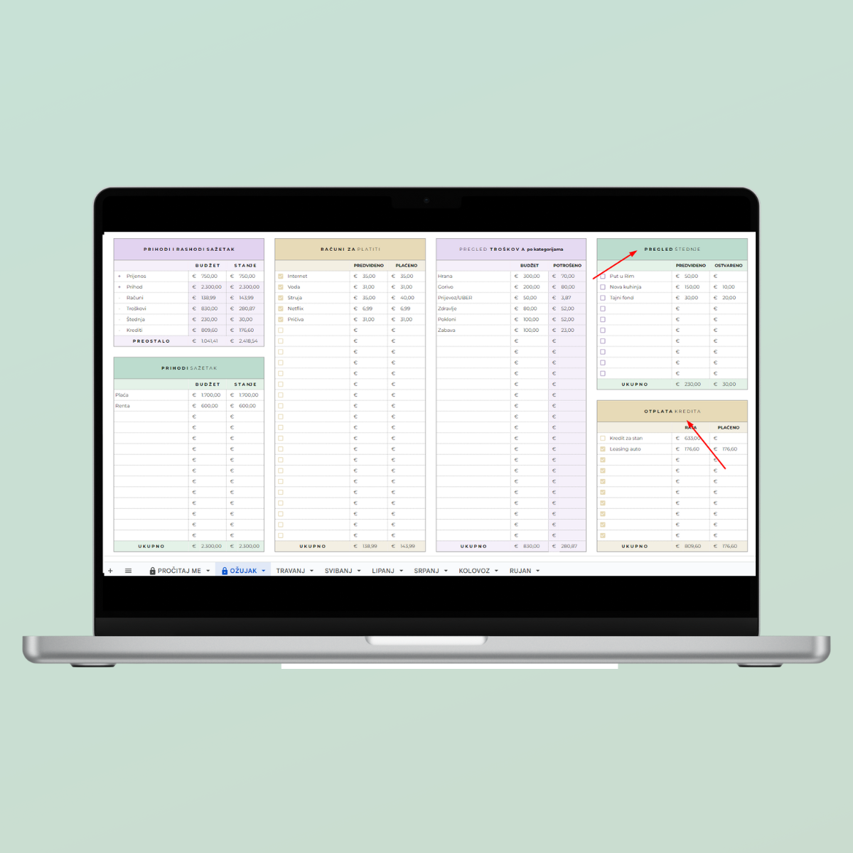 Financijski planer SMART ima prilično fleksibilne opcije prilagođavanja. Možeš dodavati, uklanjati ili mijenjati kategorije troškova i prihoda kako bi odgovarali tvom osobnom ili obiteljskom budžetu.