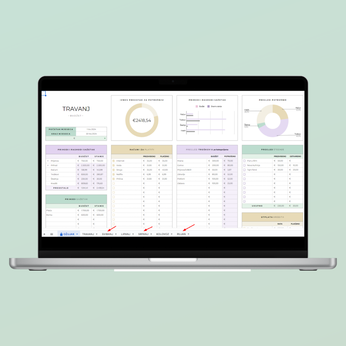 Tablicu možeš koristiti koliko god želiš. Svaki mjesec samo kopiraš karticu, upišeš naziv mjeseca i to je to! Sada možeš imati svoje financije u jednom folderu ne samo za jedan mjesec ili godinu, imaš sve od sada pa na dalje ✅