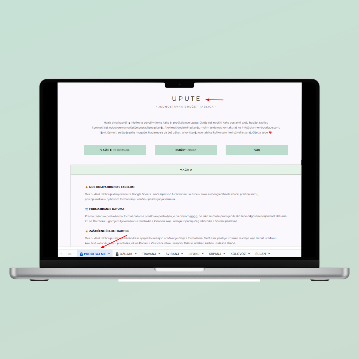Možeš lako podijeliti svoj planer putem Google Docs-a, s osobama s kojima želiš dijeliti tablicu ili im samo dati pristup. Detaljnije smo to objasnili u Uputama koje dolaze s tablicom.